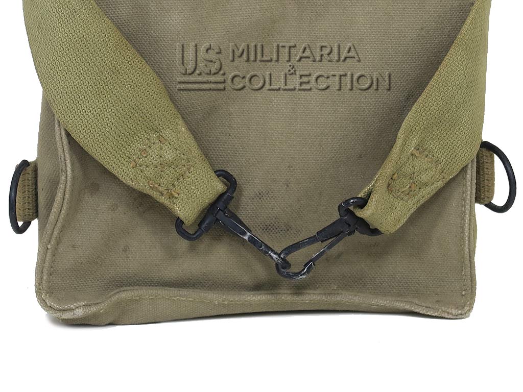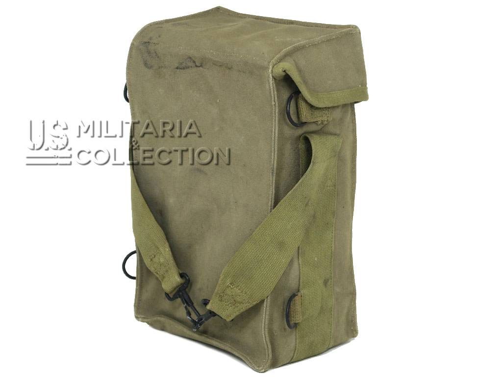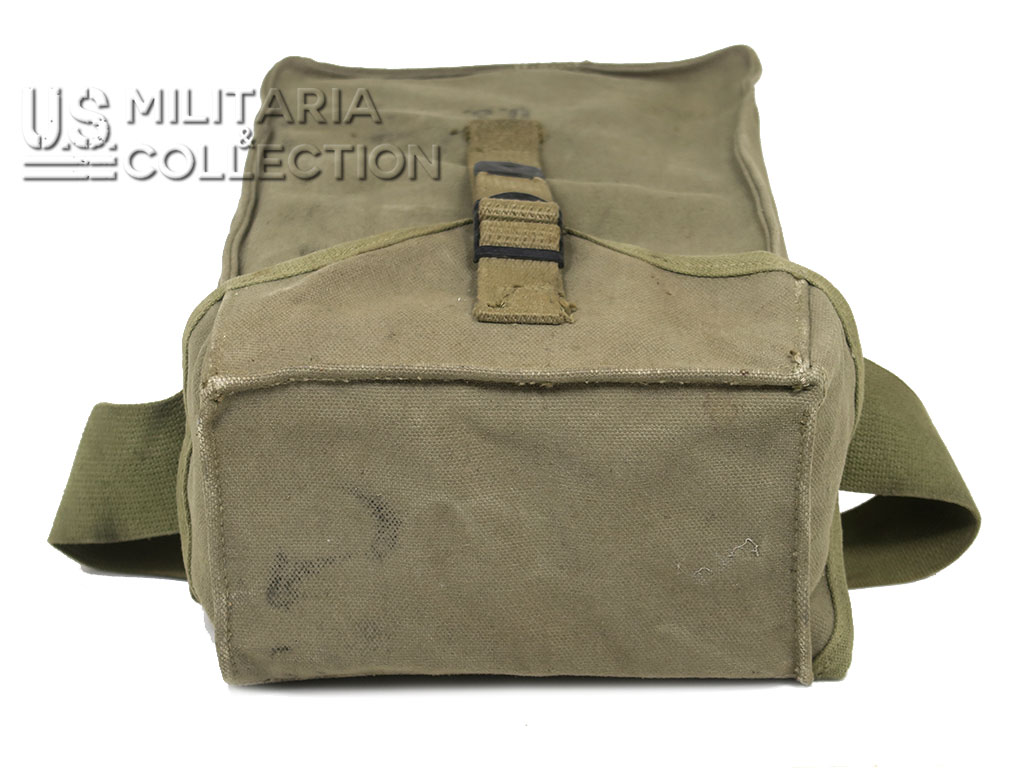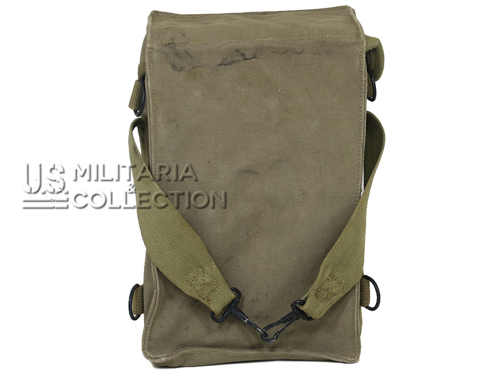 Musette GP origine Seconde Guerre mondiale. La musette GP (General Purpose) est destinée au transport de munitions. 28 grenades à main ou onze grenades à fusil sans leur container. Elle sera utilisée par les troupes aéroportées et par l’ensemble des troupes combattant au sol. Elle se porte en bandoulière lorsqu’elle est équipée de sa sangle. Peut être sanglée sur le dos. Cette musette peut être aussi transportée à la main (sans sangle) en attachant un de ses crochets sur l’un de ses anneaux. Elle peut être accrochée à un ceinturon M-1936.